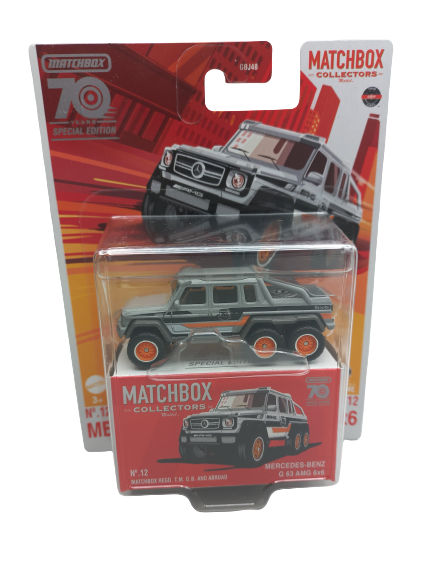 This is a Matchbox 1:64 Superfast 2023 S Case MBX MERCEDES-BENZ G63 AMG 6X6 1. It’s gray and orange with orange wheels.