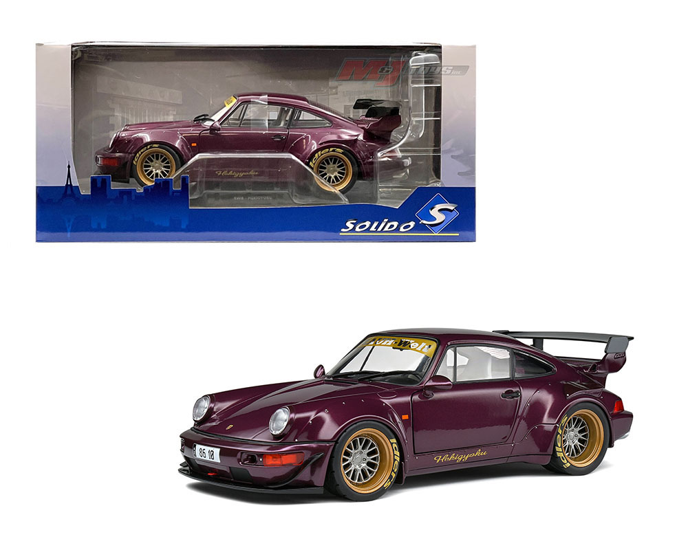 This is a Solido 1:18 2022 RWB 964 Hekigyoku. It’s purple and gold with silver wheels.