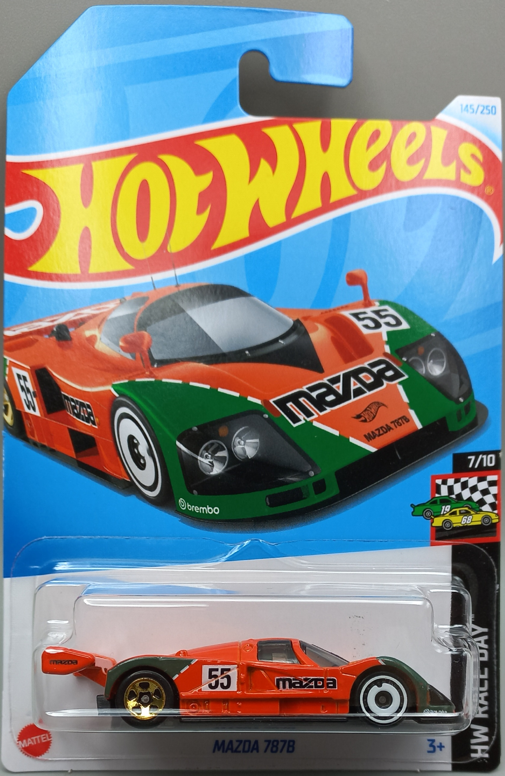 The next car we will take a look at is the potential Super Treasure Hunt for the K case, the Mazda 787B. This car comes in an orange paint with mismatching white and gold rims. The best detail for this car is the placement of many of the decals that are featured on the real car. Mazda decals can be seen on the sides, front, and top of the rear wing. A small Brembo logo can also be seen on the front fender of the car. While the car looks good in mainline form, the Spectraflame Orange Super Treasure will be extremely desirable!